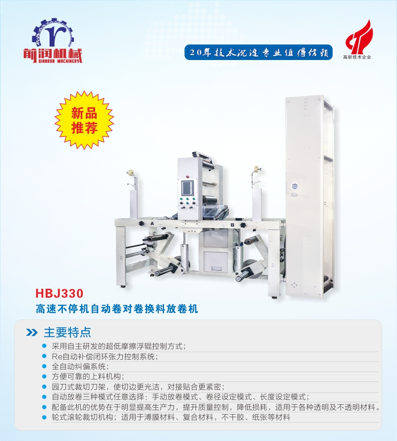 Current:主頁 > English station > Product > Automatic Unwinder/Rewinder > -HTR330/HBJ330 Automatic High Speed Rewinder/Unwinder
