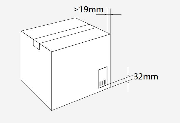 答:一個物流單元通常需要兩個標簽標識,并固定在相鄰的兩個側面上。如果實際情況不允許,每個物流單元最少要有一個標簽。 2. 問:物流標簽位置應如何放置?答:高度低于1m的物流單元:對于高度低于1m的紙板箱與其他的物流單元,標簽中SSCC的底邊應距離物流單元的底部32mm,標簽與物流單元垂直邊線的距離不小于19mm,如下圖所示。